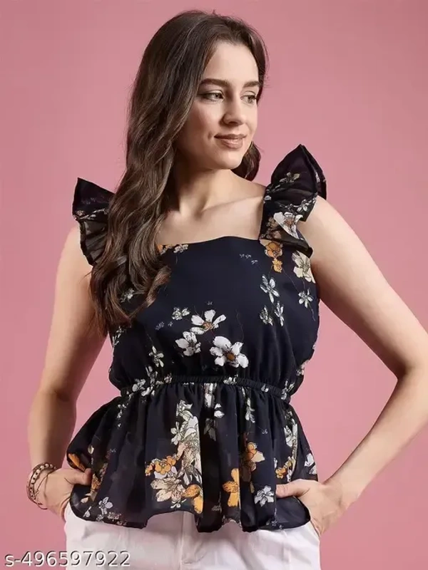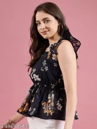Name : Femvy designer polyster top for women Fabric : Polyester Sleeve Length : Short Sleeves Pattern : Printed
